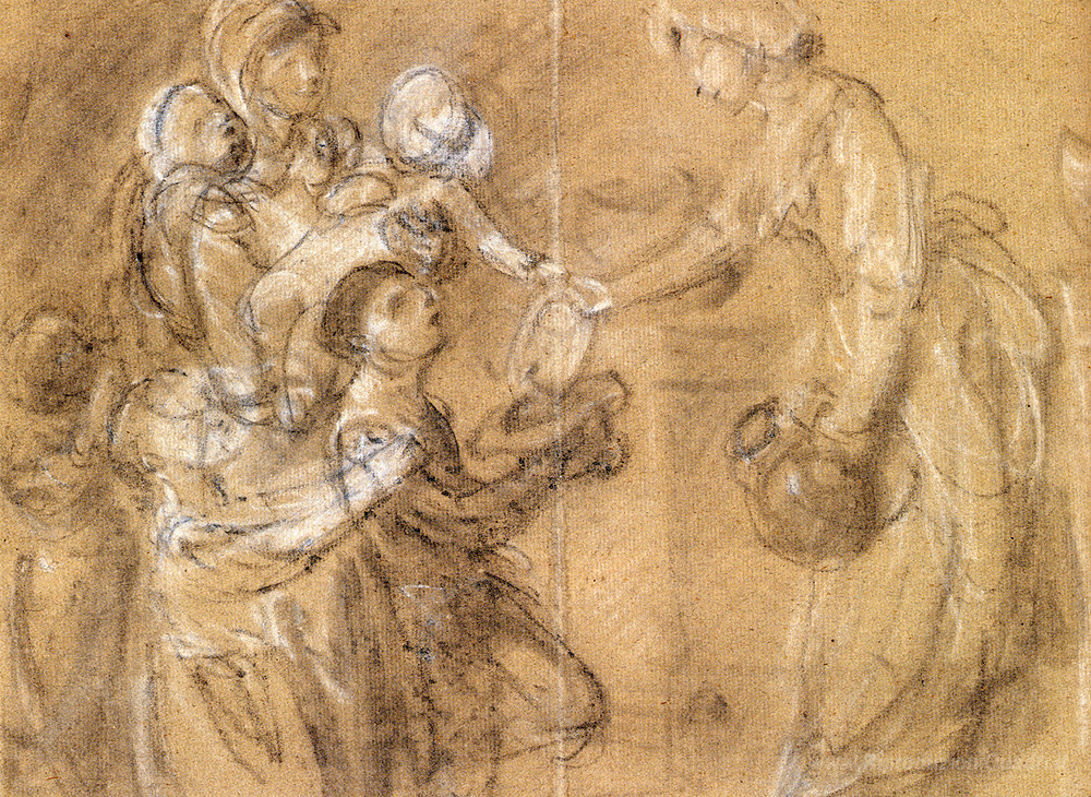 Ti offriamo una riproduzione artigianale su tela dell'opera famosa 'Studio per "La carità Relieving Distress"' di Thomas Gainsborough, dal Museo delle Riproduzioni.