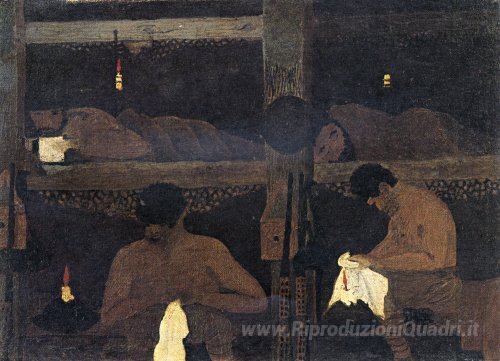 Ti offriamo una riproduzione artigianale su tela dell'opera famosa 'Studio per la Caserma' di Horace Pippin, dal Museo delle Riproduzioni.