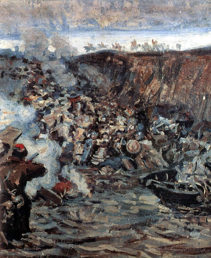 Benvenuti nella nostra esclusiva collezione di dipinti a olio, dove l’arte incontra la tradizione italiana. Oggi vi presentiamo Studio per "La conquista della Siberia da parte Yermak", un'opera straordinaria dell'artista russo Vasily Surikov, noto per la sua capacità di catturare l’intensità e la drammaticità della storia attraverso il colore e il movimento. Surikov, un maestro nel suo campo, esplora temi di grande impatto emotivo, utilizzando tecniche classiche di olio su tela che donano profondità e texture ai suoi lavori.