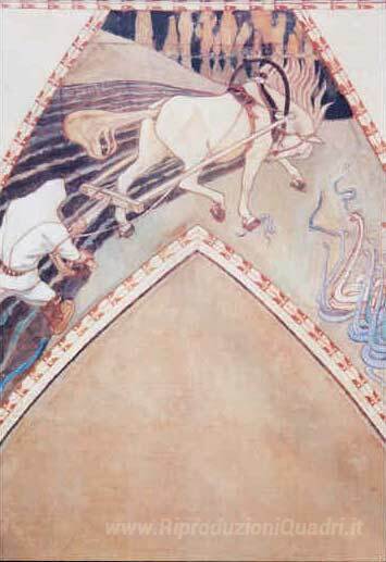 Ti offriamo una riproduzione artigianale su tela dell'opera famosa 'Studio per l'affresco 'Ilmarinen arare la Viper-campo'' di Akseli Gallen-Kallela, dal Museo delle Riproduzioni.