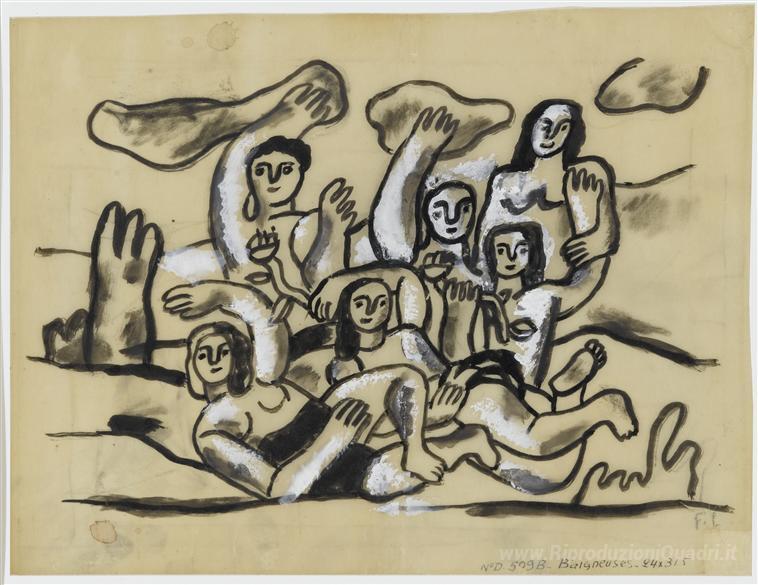 Ti offriamo una riproduzione artigianale su tela dell'opera famosa 'Studio per Le bagnanti' di Fernand Leger, dal Museo delle Riproduzioni.