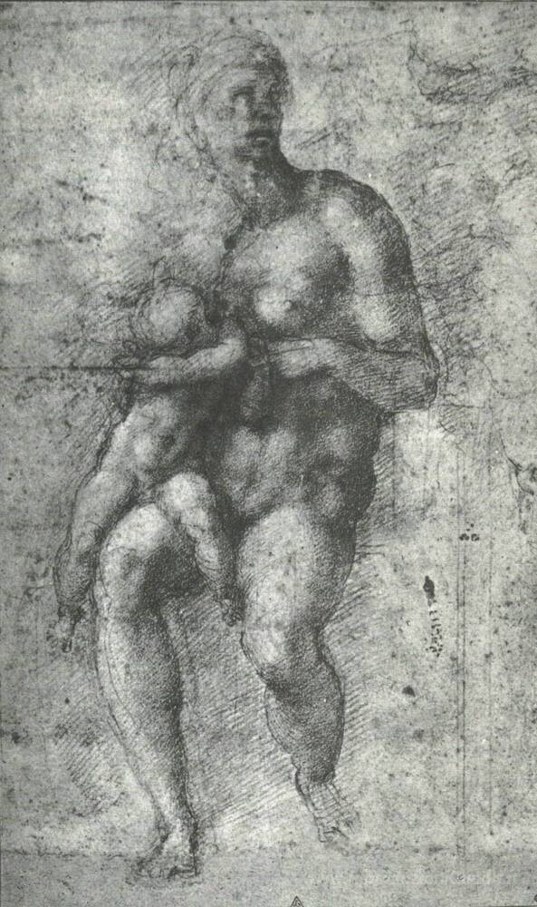 Ti offriamo una riproduzione artigianale su tela dell'opera famosa 'Studio per una "Sacra Famiglia con il Bambino San Giovanni"' di Michelangelo, dal Museo delle Riproduzioni.