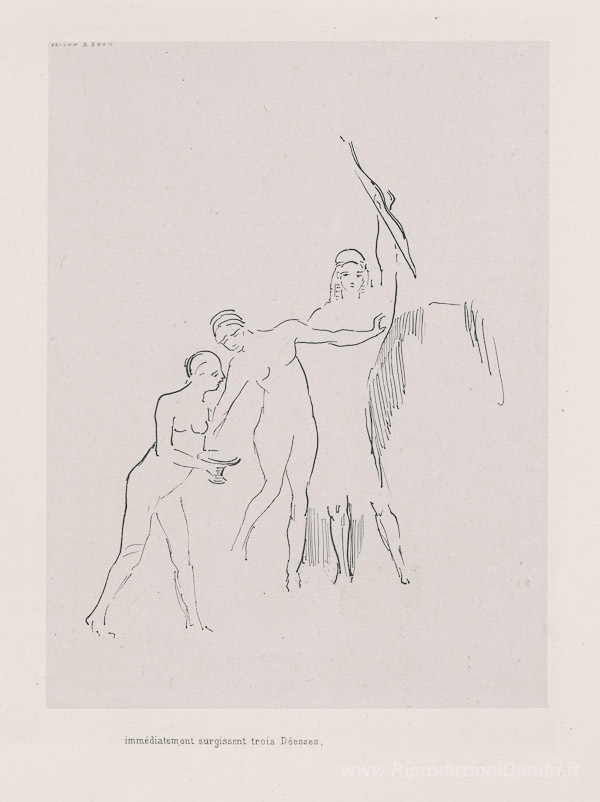 Ti offriamo una riproduzione artigianale su tela dell'opera famosa 'Subito tre dee sorgono (targa 11)' di Odilon Redon, dal Museo delle Riproduzioni.