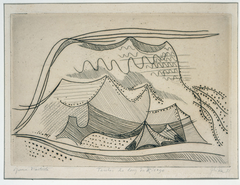 Ti offriamo una riproduzione artigianale su tela dell'opera famosa 'Tentes le long du Rivage' di Nikos Hadjikyriakos-Ghikas, dal Museo delle Riproduzioni.