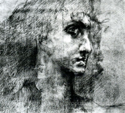 Ti offriamo una riproduzione artigianale su tela dell'opera famosa 'Testa d'angelo' di Mikhail Vrubel, dal Museo delle Riproduzioni.