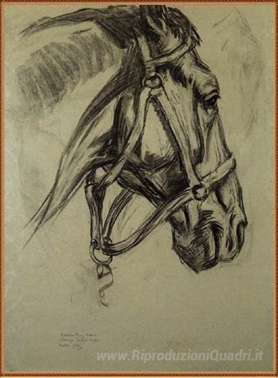 Ti offriamo una riproduzione artigianale su tela dell'opera famosa 'Testa del cavallo' di Franz Marc, dal Museo delle Riproduzioni.