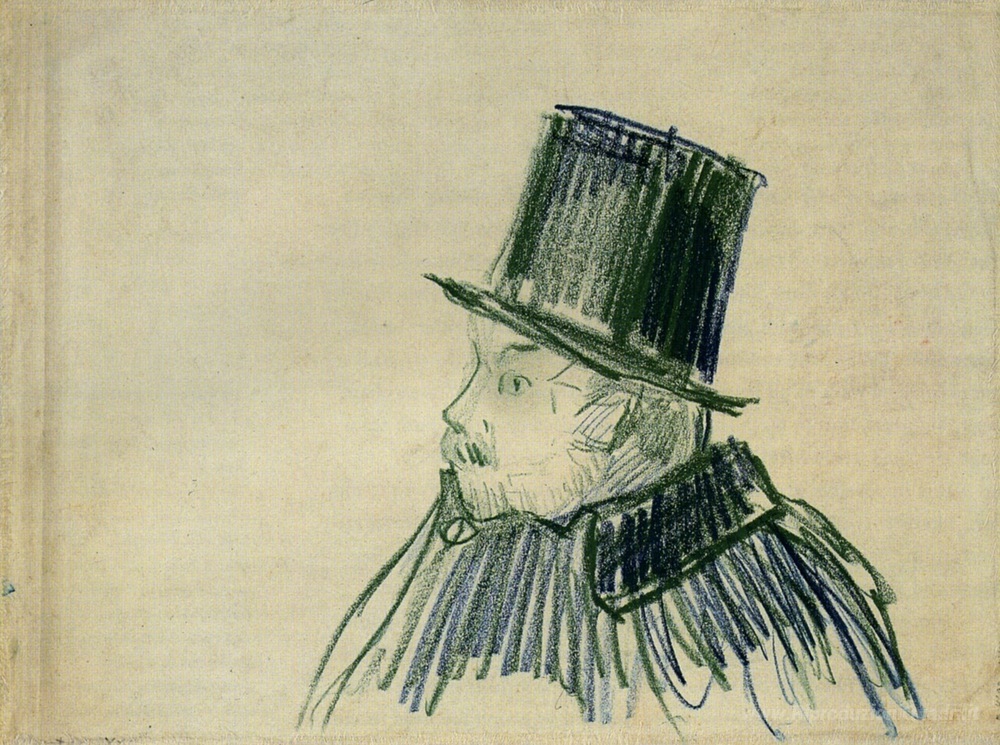 Benvenuti nella nostra esclusiva collezione di dipinti a olio, dove l'arte incontra la vostra sensibilità estetica. Oggi vi presentiamo un'opera iconica di Vincent van Gogh: "Testa di un uomo con un cappello a cilindro". Questo dipinto straordinario incarna l'essenza del genio artistico di Van Gogh, un maestro delle emozioni che riesce a trasmettere profondità e carattere attraverso il suo tratto inconfondibile.