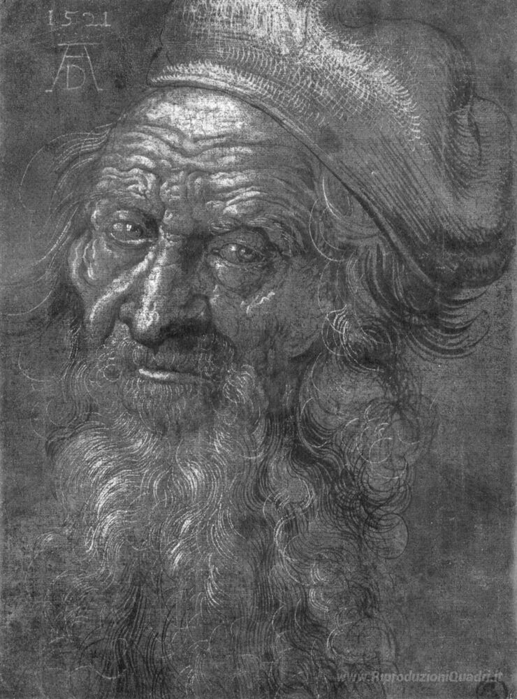 Ti offriamo una riproduzione artigianale su tela dell'opera famosa 'Testa di vecchio' di Albrecht Durer, dal Museo delle Riproduzioni.