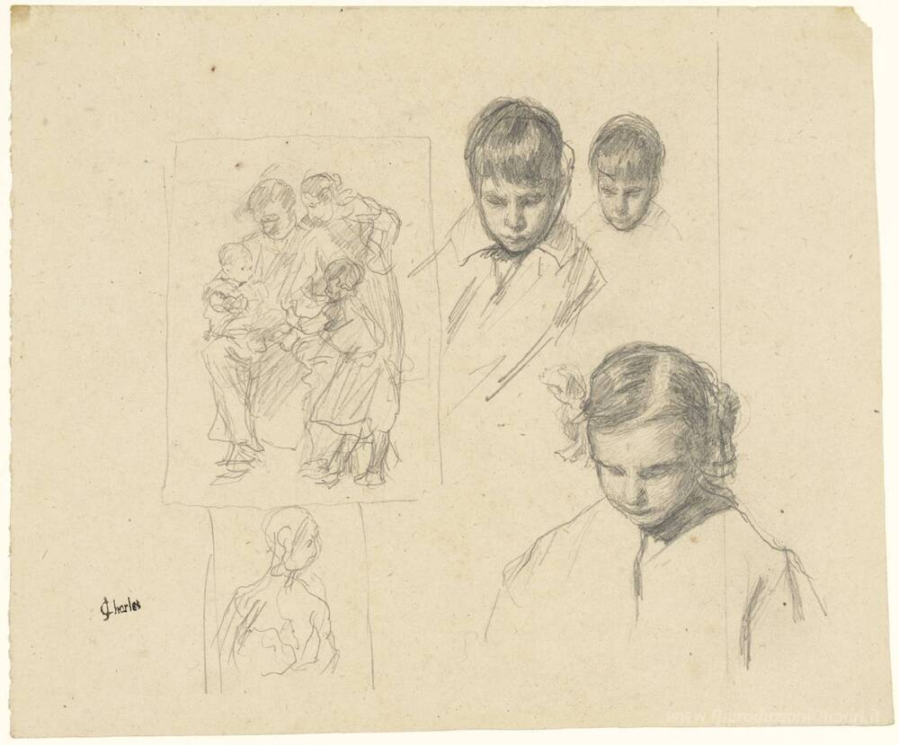 Ti offriamo una riproduzione artigianale su tela dell'opera famosa 'Teste: Bambini e un gruppo familiare' di James Charles, dal Museo delle Riproduzioni.