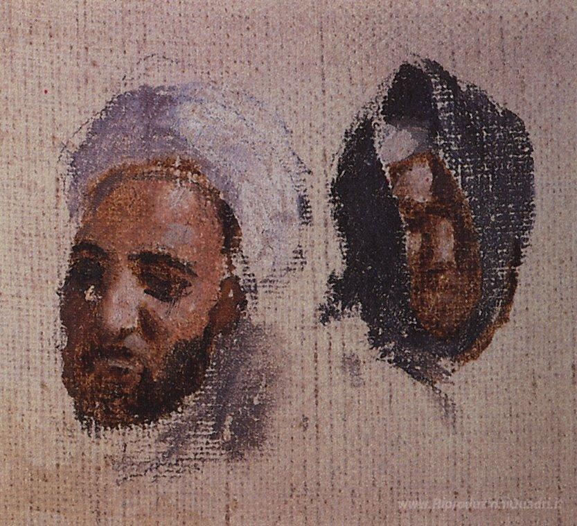 Ti offriamo una riproduzione artigianale su tela dell'opera famosa 'Teste dei due uomini in turbante' di Vasily Polenov, dal Museo delle Riproduzioni.