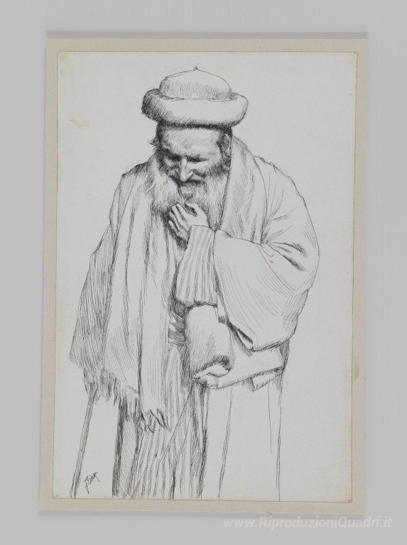 Ti offriamo una riproduzione artigianale su tela dell'opera famosa 'Tipo di Ebreo' di James Tissot, dal Museo delle Riproduzioni.