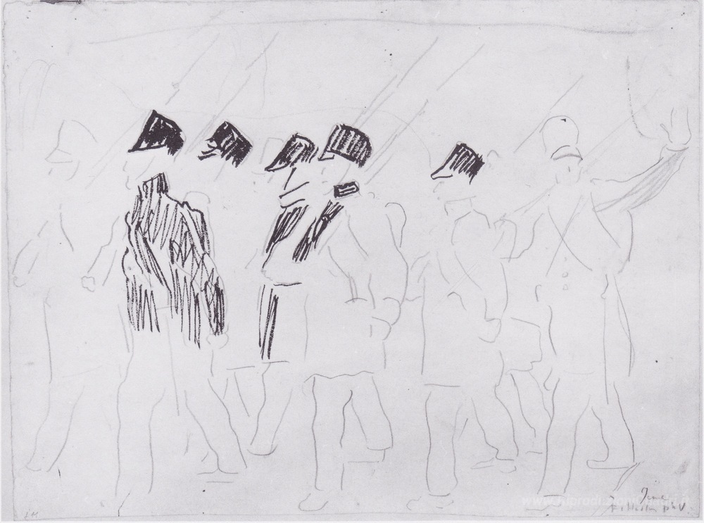 Ti offriamo una riproduzione artigianale su tela dell'opera famosa 'Tirando soldati' di Ferdinand Hodler, dal Museo delle Riproduzioni.