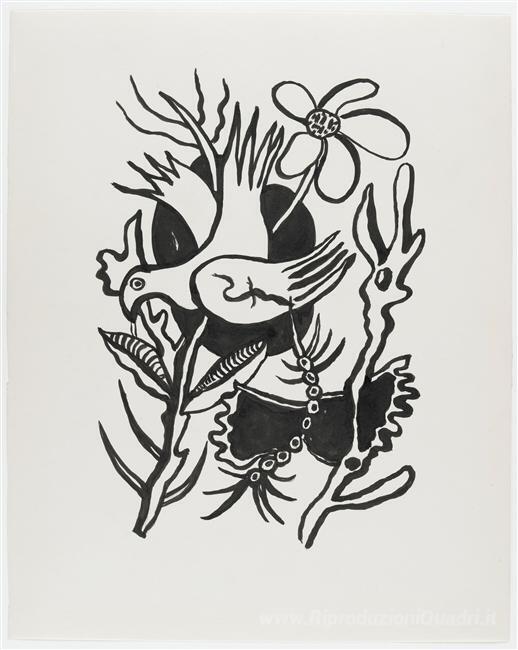 Ti offriamo una riproduzione artigianale su tela dell'opera famosa 'Titolo dato l'uccello nei fiori, studio per il Circo' di Fernand Leger, dal Museo delle Riproduzioni.