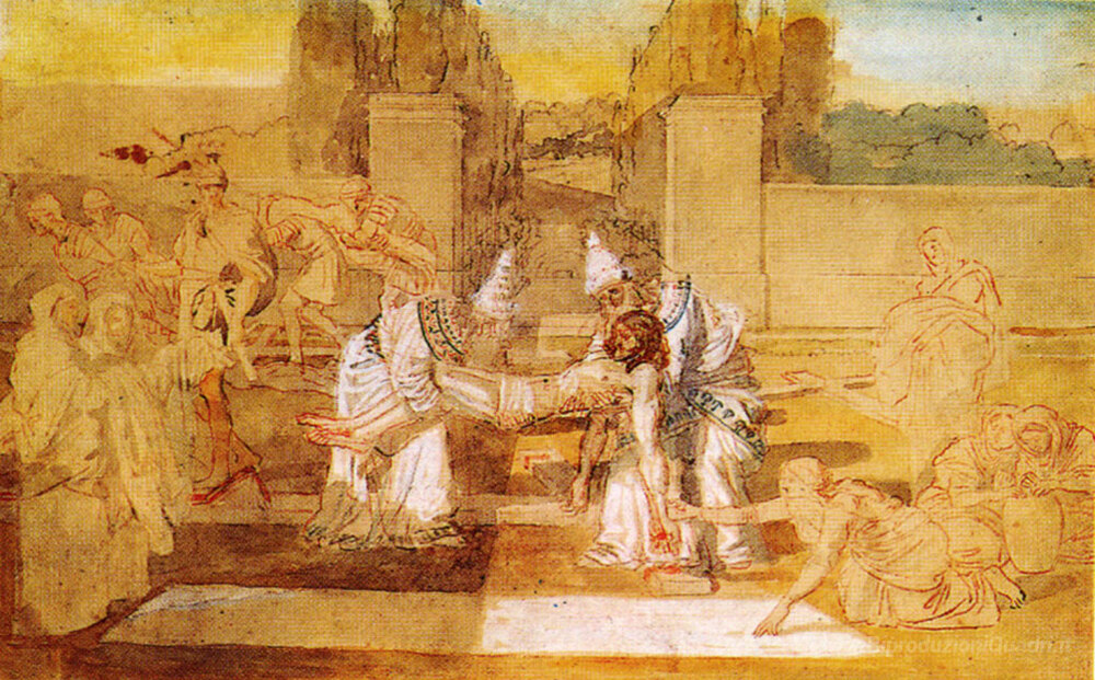 Ti offriamo una riproduzione artigianale su tela dell'opera famosa 'Trasporto di Cristo' di Alexander Ivanov, dal Museo delle Riproduzioni.