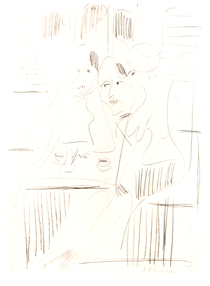 Nel cuore dell'arte italiana, il dipinto Tre donne in un caffè, realizzato dal maestro Ernst Ludwig Kirchner, rappresenta un’opera che fonde abilmente il vivace dinamismo della vita moderna con una profonda introspezione emotiva. Kirchner, fondatore del movimento espressionista, utilizza colori audaci e pennellate energiche per catturare l'essenza dei soggetti, trasmettendo una sensazione di movimento e vitalità che pervade l'intera composizione.