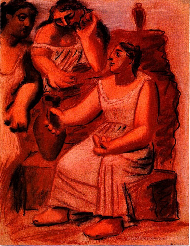Ti offriamo una riproduzione artigianale su tela dell'opera famosa 'Tre donne in una fontana (studio)' di Pablo Picasso, dal Museo delle Riproduzioni.