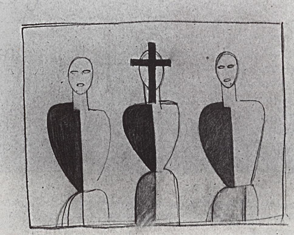 Ti offriamo una riproduzione artigianale su tela dell'opera famosa 'Tre figure suprematic' di Kazimir Malevich, dal Museo delle Riproduzioni.