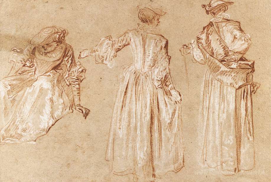 Ti offriamo una riproduzione artigianale su tela dell'opera famosa 'Tre studi di una signora con un cappello' di Antoine Watteau, dal Museo delle Riproduzioni.