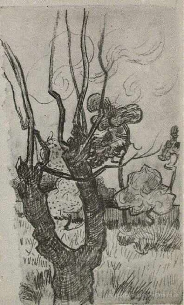 Ti offriamo una riproduzione artigianale su tela dell'opera famosa 'Un Bare Treetop nel giardino del manicomio' di Vincent van Gogh, dal Museo delle Riproduzioni.