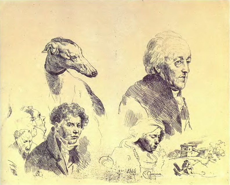 Ti offriamo una riproduzione artigianale su tela dell'opera famosa 'Un grande griffonnage' di Orest Kiprensky, dal Museo delle Riproduzioni.