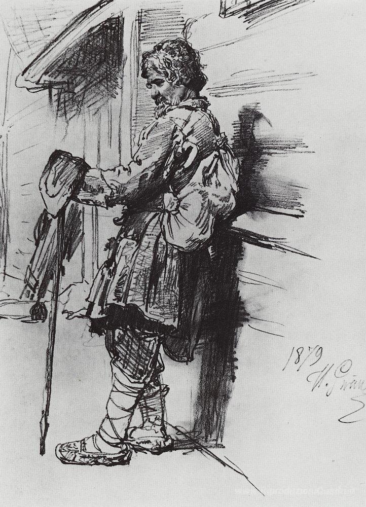 Ti offriamo una riproduzione artigianale su tela dell'opera famosa 'Un mendicante con un sacchetto' di Ilya Repin, dal Museo delle Riproduzioni.