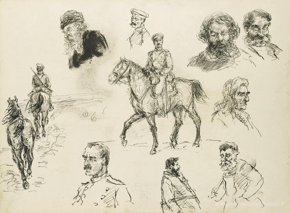 Ti offriamo una riproduzione artigianale su tela dell'opera famosa 'Un russo Cavalleria Officer (recto) e Altri Sketches of Vari per' di Ivan Vladimirov, dal Museo delle Riproduzioni.