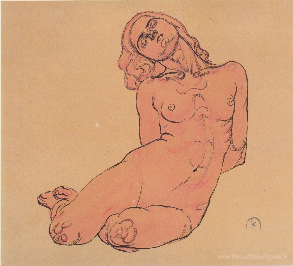 Ti offriamo una riproduzione artigianale su tela dell'opera famosa 'Una donna accovacciata' di Koloman Moser, dal Museo delle Riproduzioni.
