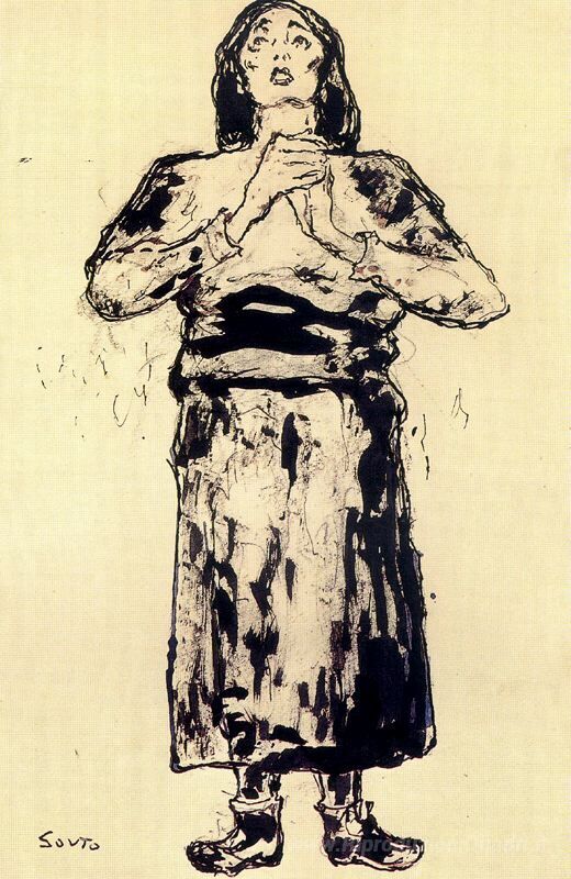 Ti offriamo una riproduzione artigianale su tela dell'opera famosa 'Una donna' di Arturo Souto, dal Museo delle Riproduzioni.