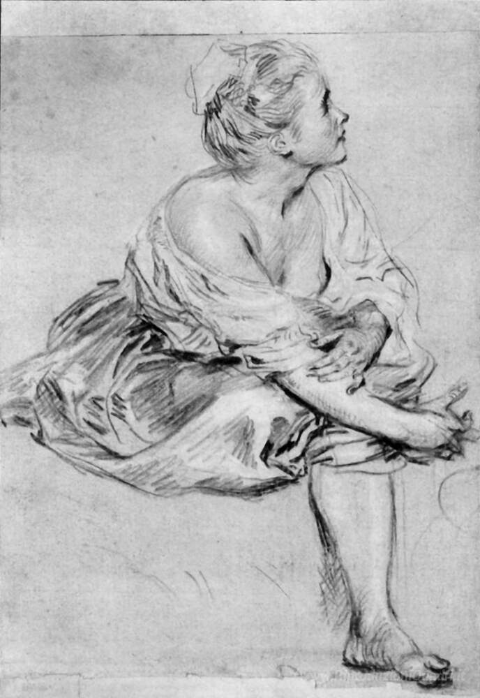 Ti offriamo una riproduzione artigianale su tela dell'opera famosa 'Una donna seduta' di Antoine Watteau, dal Museo delle Riproduzioni.
