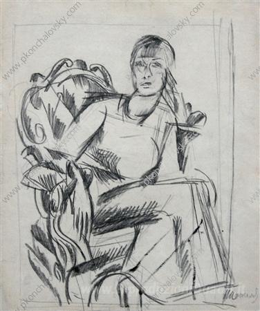 Ti offriamo una riproduzione artigianale su tela dell'opera famosa 'Uno schizzo di una figura femminile, seduta su una sedia per il ' di Pyotr Konchalovsky, dal Museo delle Riproduzioni.