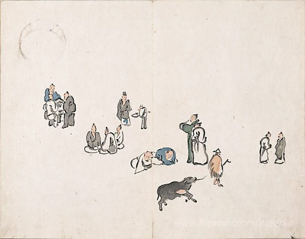 Ti offriamo una riproduzione artigianale su tela dell'opera famosa 'Untitled (figure)' di Ike no Taiga, dal Museo delle Riproduzioni.