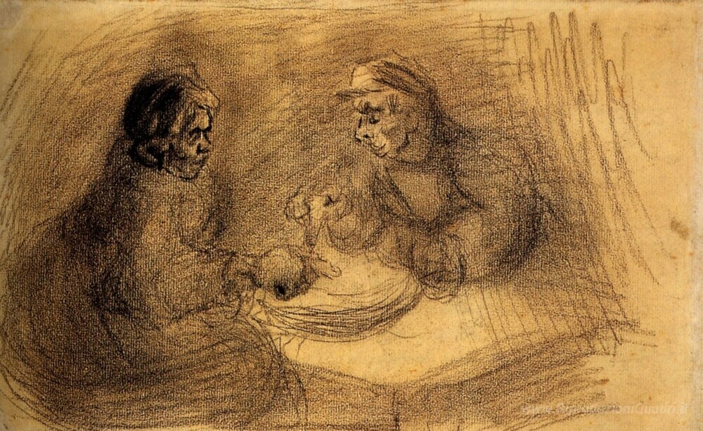 Ti offriamo una riproduzione artigianale su tela dell'opera famosa 'Uomo e donna condivisione di un pasto' di Vincent van Gogh, dal Museo delle Riproduzioni.