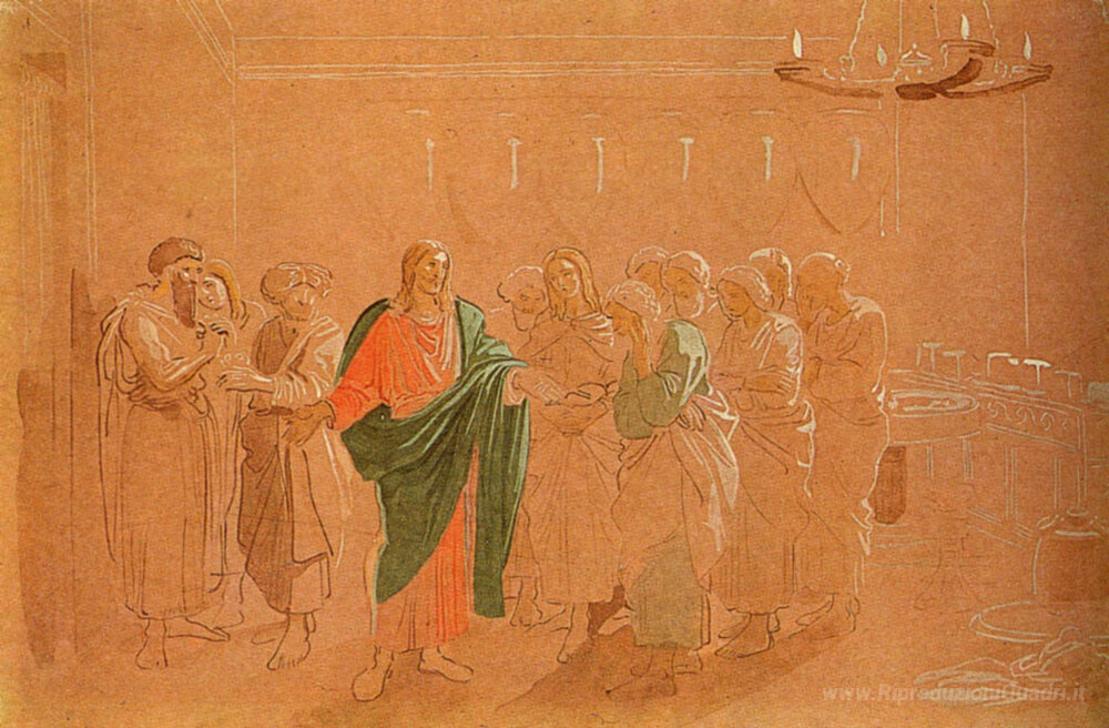Ti offriamo una riproduzione artigianale su tela dell'opera famosa 'Uscita dal Ultima Cena' di Alexander Ivanov, dal Museo delle Riproduzioni.