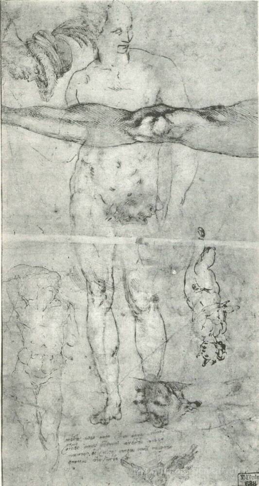 Ti offriamo una riproduzione artigianale su tela dell'opera famosa 'Vari studi' di Michelangelo, dal Museo delle Riproduzioni.