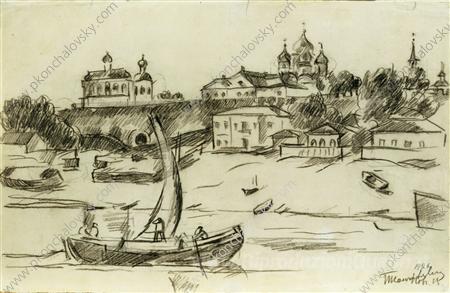 Ti offriamo una riproduzione artigianale su tela dell'opera famosa 'Veliky Novgorod. Cremlino.' di Pyotr Konchalovsky, dal Museo delle Riproduzioni.