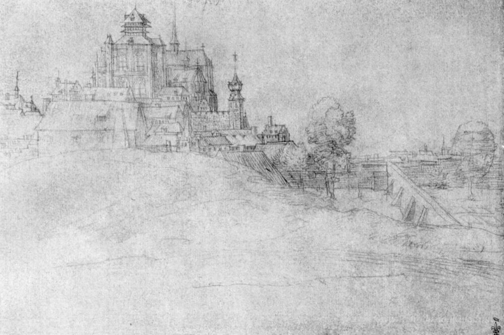 Ti offriamo una riproduzione artigianale su tela dell'opera famosa 'Vista di Bergen op Zoom' di Albrecht Durer, dal Museo delle Riproduzioni.