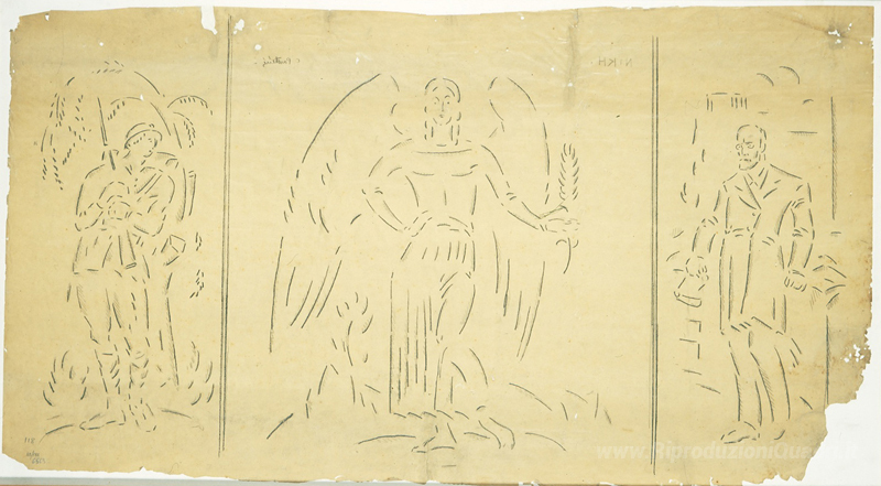Ti offriamo una riproduzione artigianale su tela dell'opera famosa 'Vittoria Trittico' di Konstantinos Parthenis, dal Museo delle Riproduzioni.