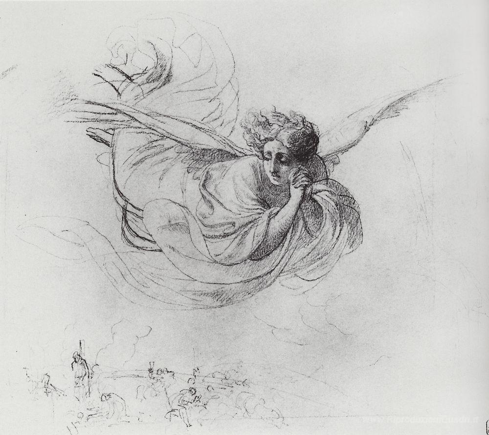 Ti offriamo una riproduzione artigianale su tela dell'opera famosa 'Volare Angelo lutto vittime dell'Inquisizione' di Karl Bryullov, dal Museo delle Riproduzioni.