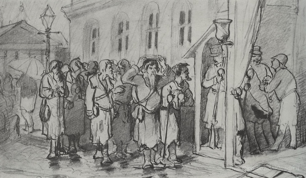 Ti offriamo una riproduzione artigianale su tela dell'opera famosa 'Walkers in cerca di' di Vasily Perov, dal Museo delle Riproduzioni.