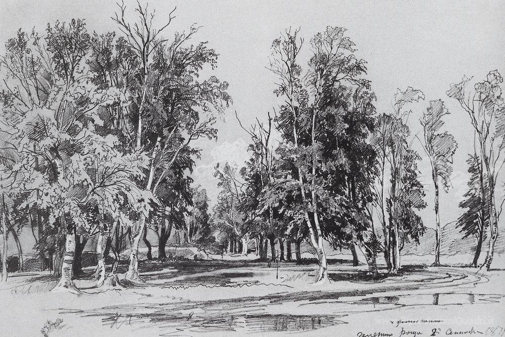 Ti offriamo una riproduzione artigianale su tela dell'opera famosa 'Zelenina boschetto' di Ivan Shishkin, dal Museo delle Riproduzioni.
