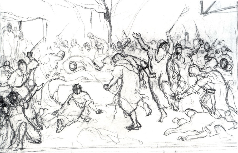 Il dipinto Zelo Khlysty. Sketch esprime una narrazione intensa, con un uso sapiente dei colori e delle luci che accresce l'atmosfera del vostro spazio domestico o professionale. Questo pezzo non è solo un’aggiunta decorativa, ma un portavoce di emozioni e storie che arricchiranno il vostro ambiente, creando un legame profondo tra l'opera e chi la osserva. Scegliete l'arte che parla al vostro cuore e valorizza ogni angolo della vostra vita.