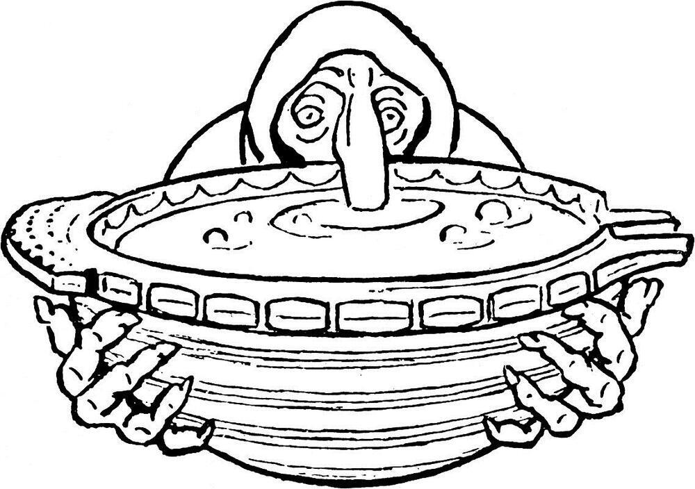 Ti offriamo una riproduzione artigianale su tela dell'opera famosa 'Zuppa di Kathy con lo studio volto' di Theodor Severin Kittelsen, dal Museo delle Riproduzioni.