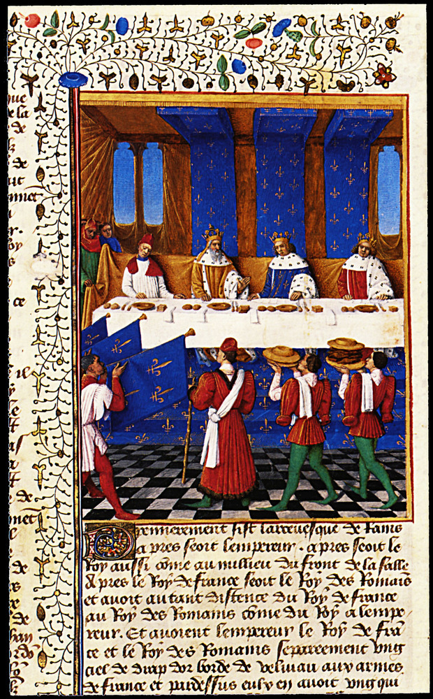 Ti offriamo una riproduzione artigianale su tela dell'opera famosa 'Banchetto da Carlo V (1338-1380), in Hhonour di suo zio dell'imp' di Jean Fouquet, dal Museo delle Riproduzioni.