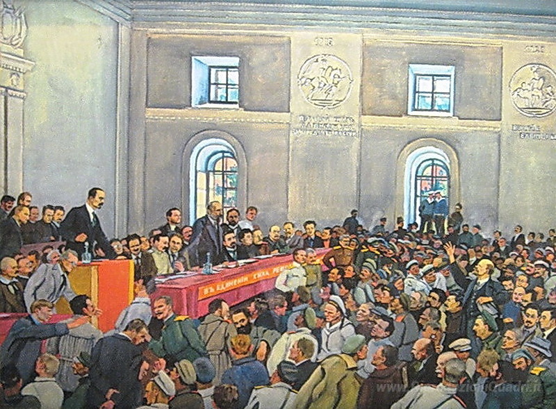 Ti offriamo una riproduzione artigianale su tela dell'opera famosa 'C'è una tale festa! (Lenin al 1 ° Congresso panrusso dei lavorat' di Konstantin Yuon, dal Museo delle Riproduzioni.