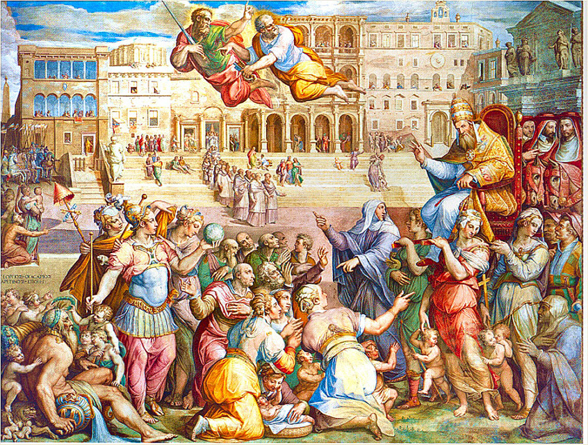 Ti offriamo una riproduzione artigianale su tela dell'opera famosa 'Caterina da Siena scortato papa Gregorio XI a Roma il 17 gen 137' di Giorgio Vasari, dal Museo delle Riproduzioni.