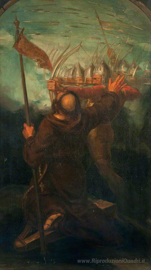 Ti offriamo una riproduzione artigianale su tela dell'opera famosa 'Guerra inglese. La Lancia (trittico, pannello di destra)' di David Scott, dal Museo delle Riproduzioni.