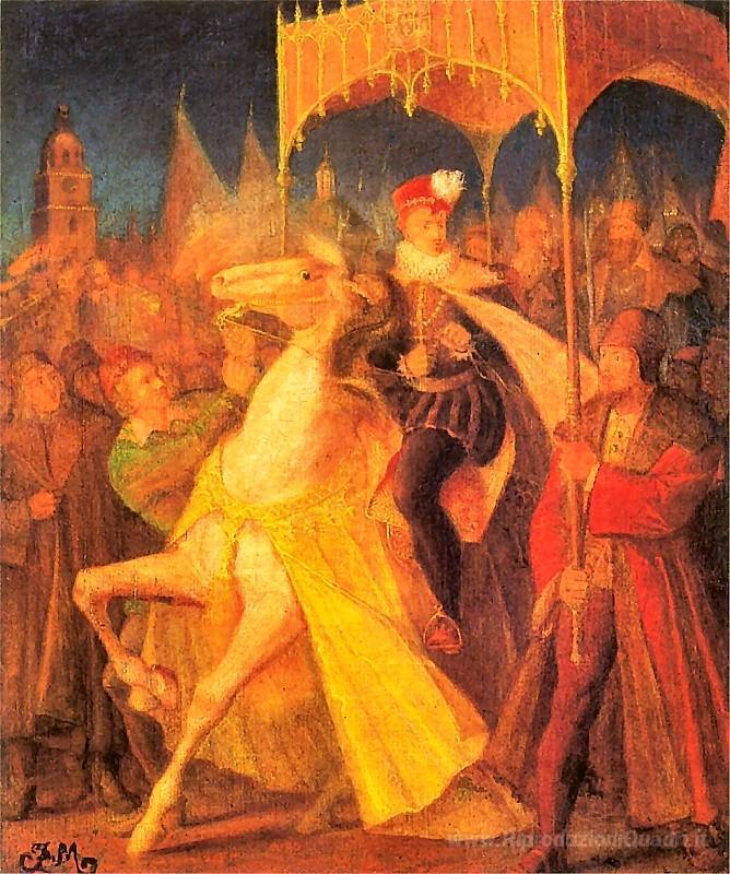Ti offriamo una riproduzione artigianale su tela dell'opera famosa 'Ingresso Valois' di Jan Matejko, dal Museo delle Riproduzioni.