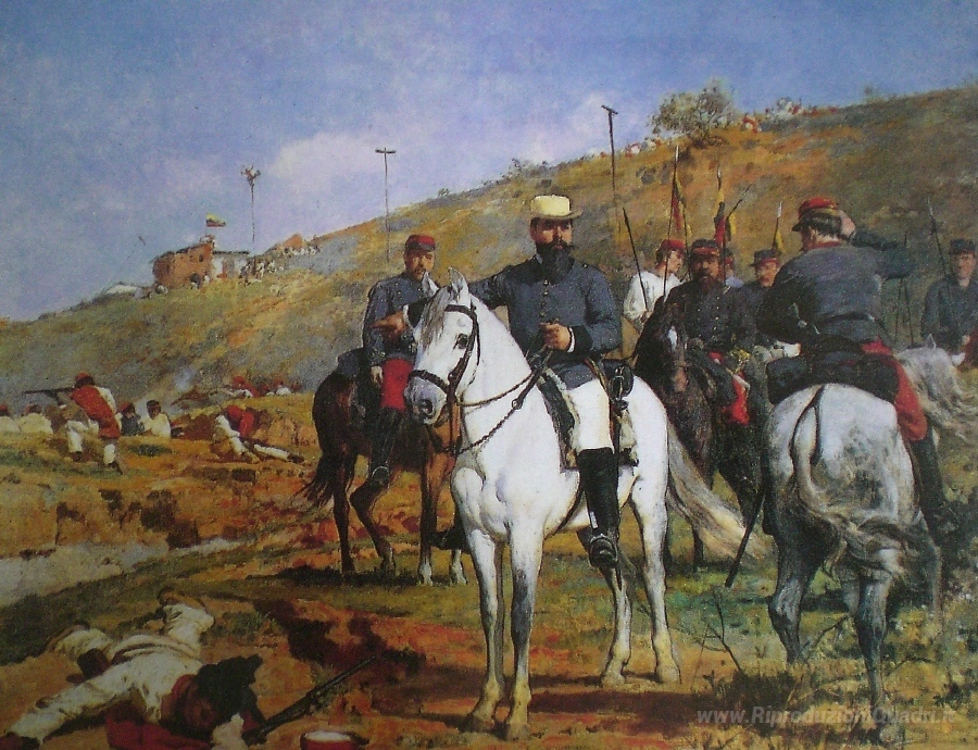 Ti offriamo una riproduzione artigianale su tela dell'opera famosa 'Joaquín Crespo en la Batalla de Los Colorados' di Arturo Michelena, dal Museo delle Riproduzioni.