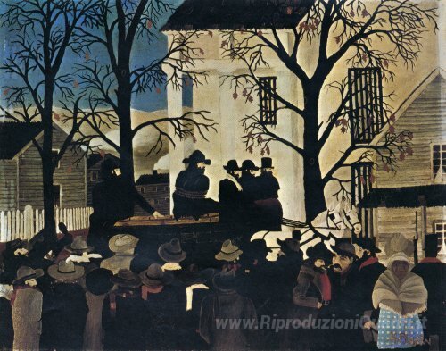 Ti offriamo una riproduzione artigianale su tela dell'opera famosa 'John Brown Going To sua impiccagione' di Horace Pippin, dal Museo delle Riproduzioni.