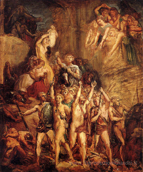 Benvenuti nel nostro esclusivo catalogo di dipinti a olio italiani, dove l'arte e l'eleganza si fondono per arricchire il vostro spazio. Oggi vi presentiamo La défense des Gaules, un'opera straordinaria del maestro Theodore Chasseriau. Imperdibile per gli amanti della pittura romantica, questo dipinto cattura l'essenza della lotta e della bellezza, trasportando chi lo osserva in un'epoca di grande fervore artistico e culturale.